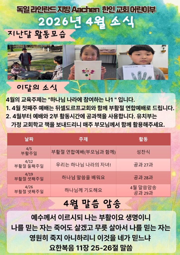 4월 30일 주일학교 초등부 예배 안내